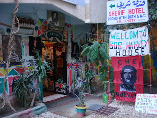 The next morning, we got up early to head over to one of the crown jewels of Egypt, the Temples of Karnak. First, I think it appropriate to tell you about the hostel we stayed in. Marja, one of my friends on this trip, thought it might be fun to stay here when she booked our rooms. As you can see, the Bob Marley House seems to cater to a certain kind of traveler. In spite of the decor on the outside, the rooms inside were very nice, and the service was great. Still, it was quite the surprise when we first checked in.